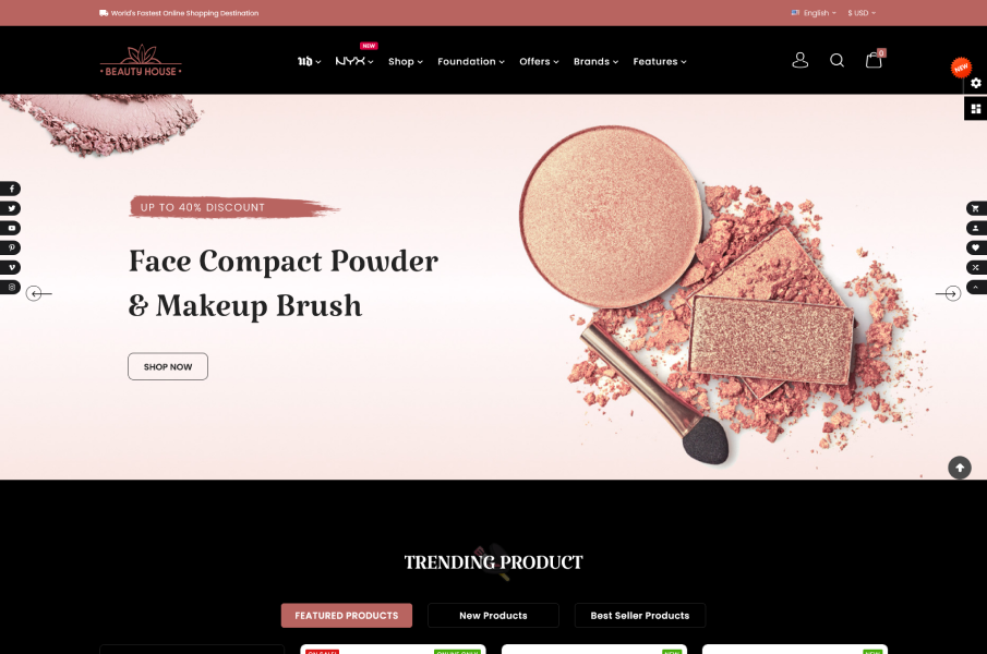Here is Rich type of features that we used in BEAUTYHOUSE. See and check out what you get with our Templates.