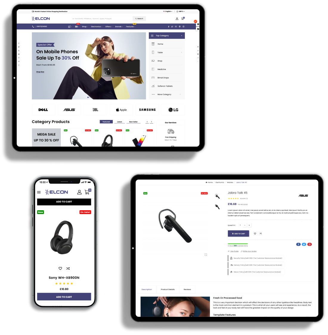 ELECTRONIC STORES is fully responsive, adapt the device size, pixel perfect and all elements look beautiful in all standard and Retina devices and resolutions.