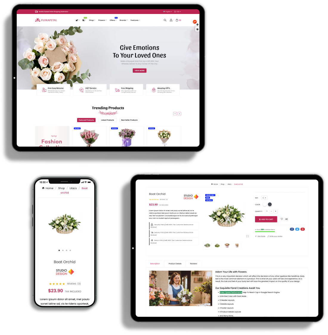 FLORAPETAL is fully responsive, adapt the device size, pixel perfect and all elements look beautiful in all standard and Retina devices and resolutions.