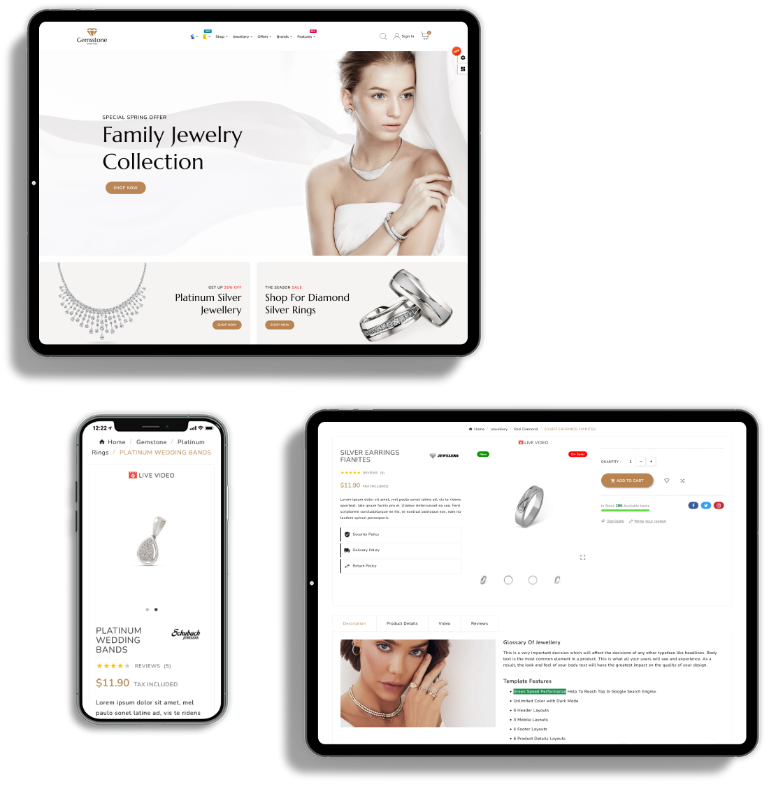 GEMSSTONE is fully responsive, adapt the device size, pixel perfect and all elements look beautiful in all standard and Retina devices and resolutions.