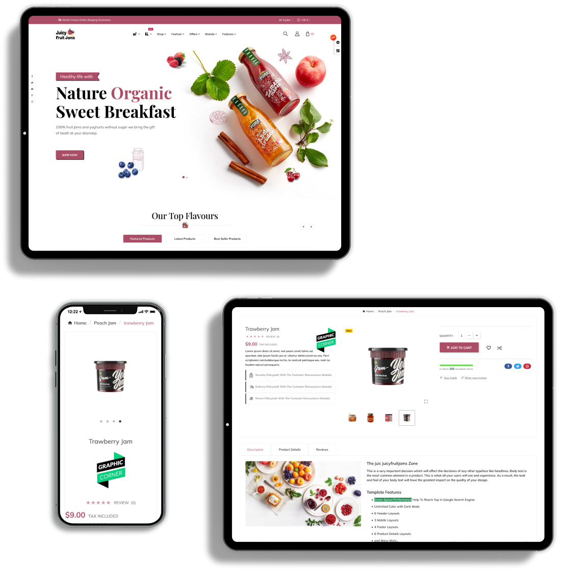 JUICYFRUITJAMS is fully responsive, adapt the device size, pixel perfect and all elements look beautiful in all standard and Retina devices and resolutions.