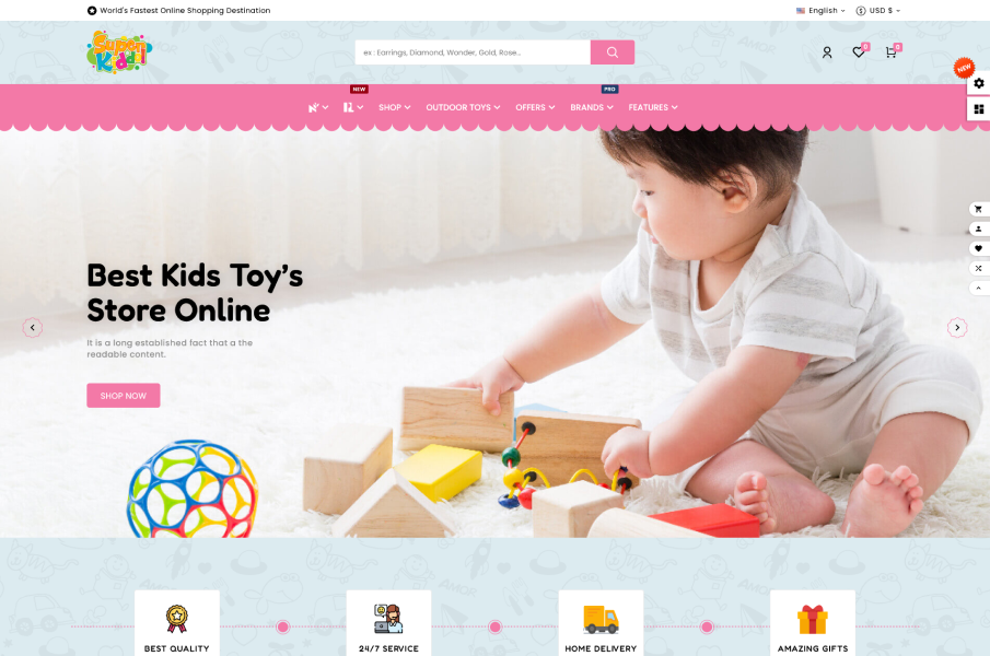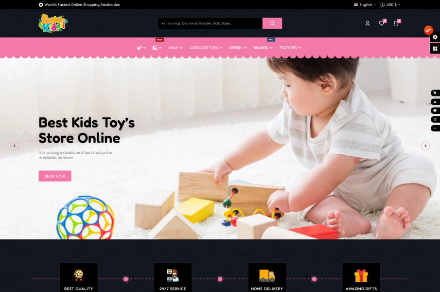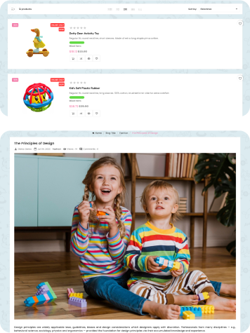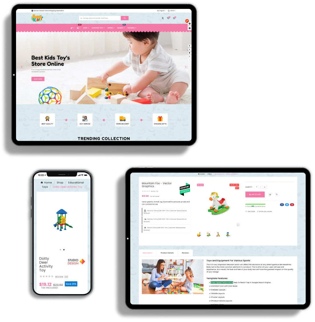 Here is Rich type of features that we used in KIDSTOY. See and check out what you get with our Templates.