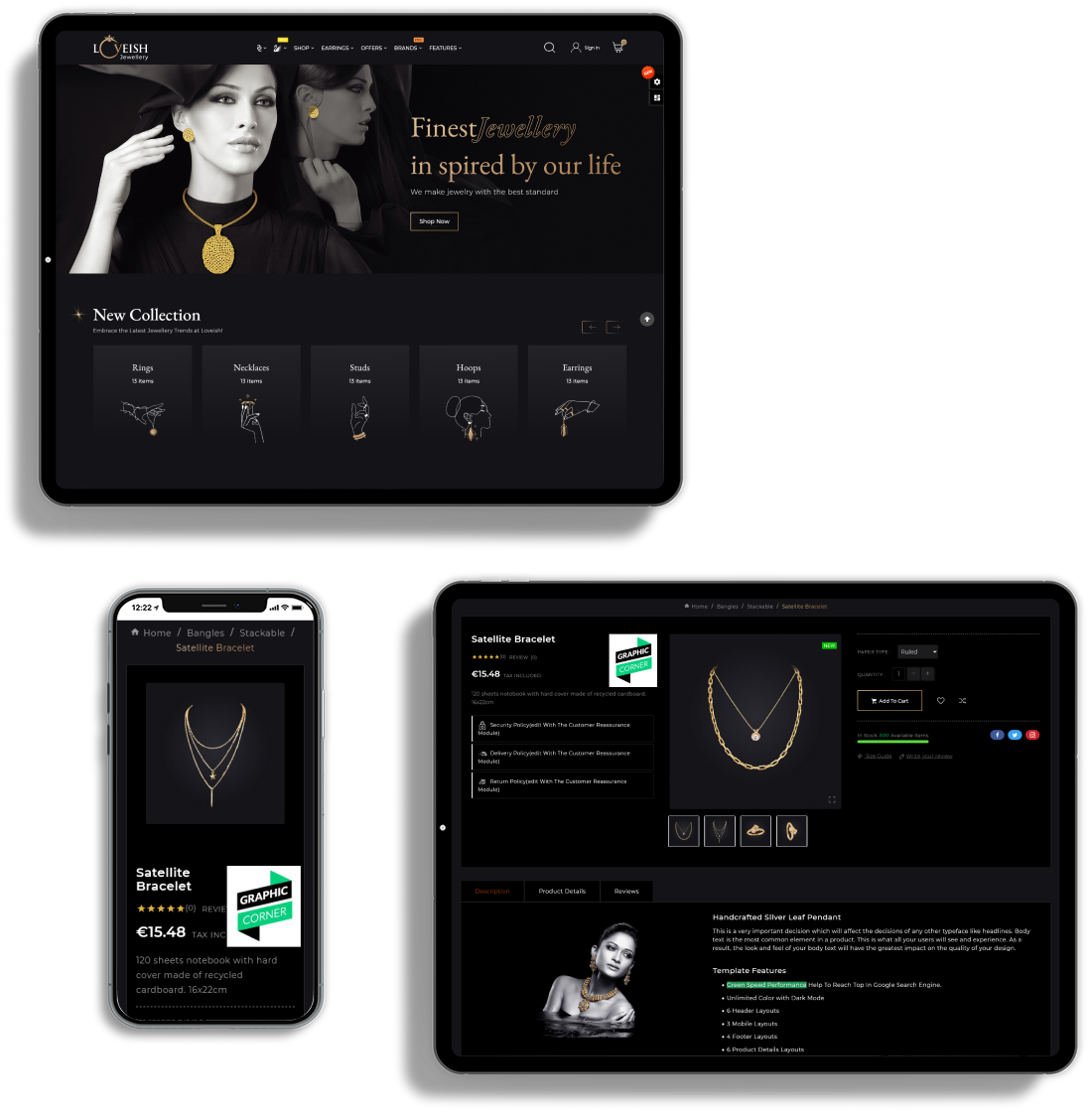 Loveish Jewellery is fully responsive, adapt the device size, pixel perfect and all elements look beautiful in all standard and Retina devices and resolutions.