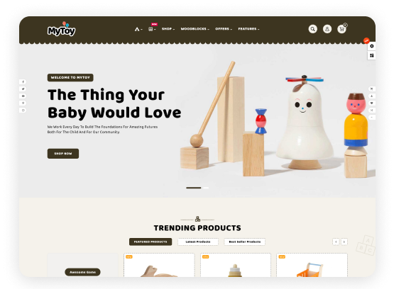 Here is Rich type of features that we used in MYTOY. See and check out what you get with our Templates.