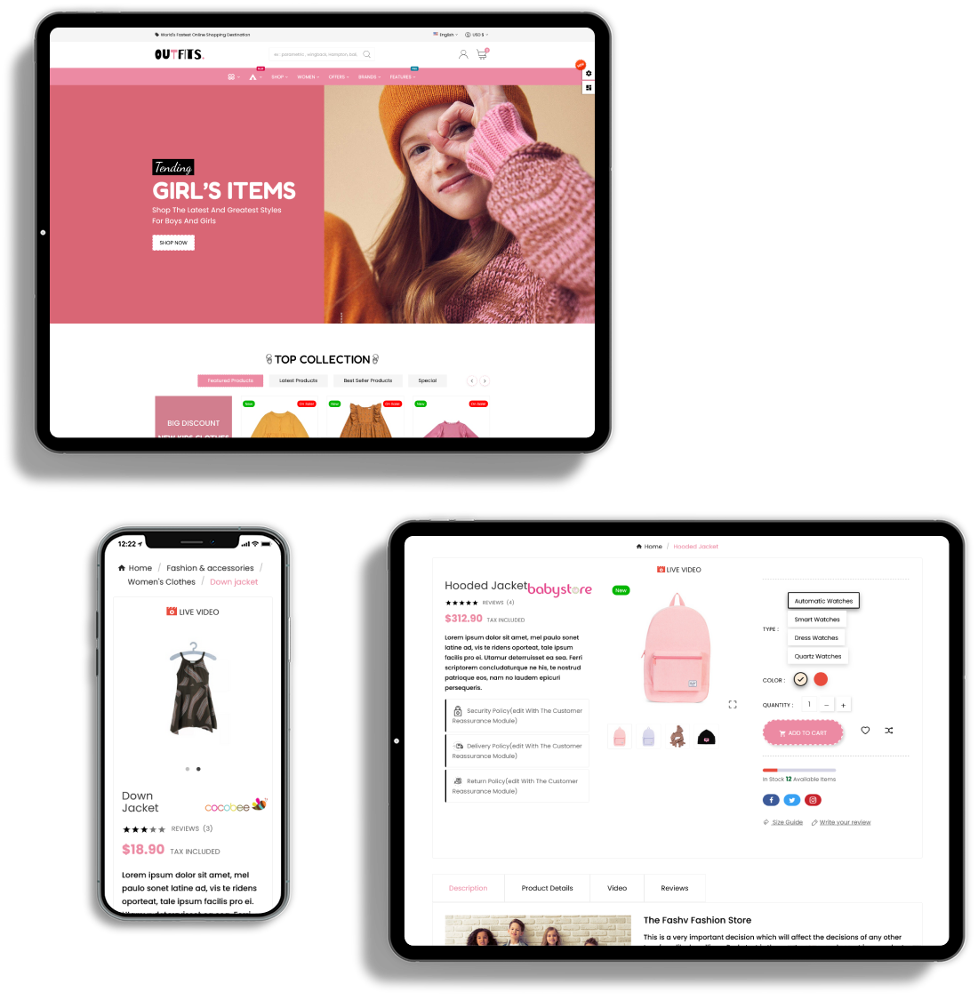 OUTFIT is fully responsive, adapt the device size, pixel perfect and all elements look beautiful in all standard and Retina devices and resolutions.