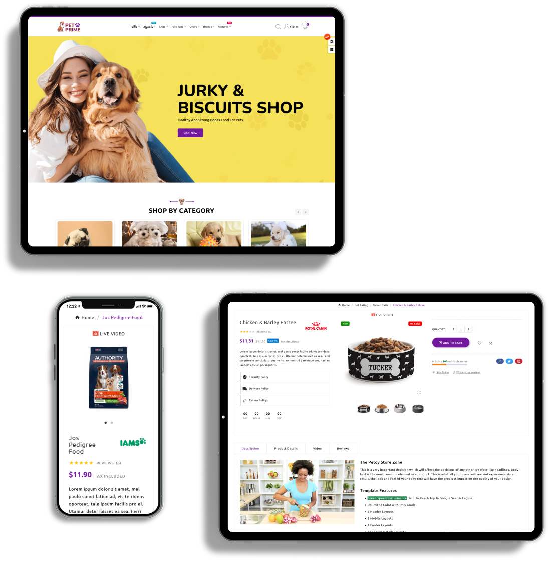 PETPRIME is fully responsive, adapt the device size, pixel perfect and all elements look beautiful in all standard and Retina devices and resolutions.