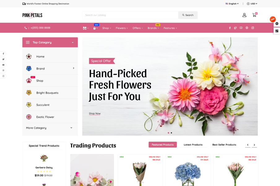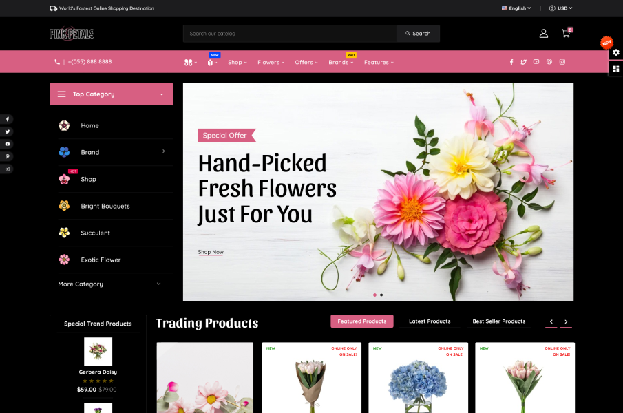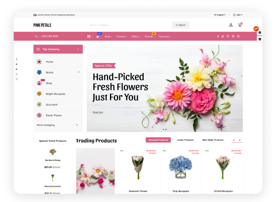 Here is Rich type of features that we used in PINKPETALS. See and check out what you get with our Templates.
