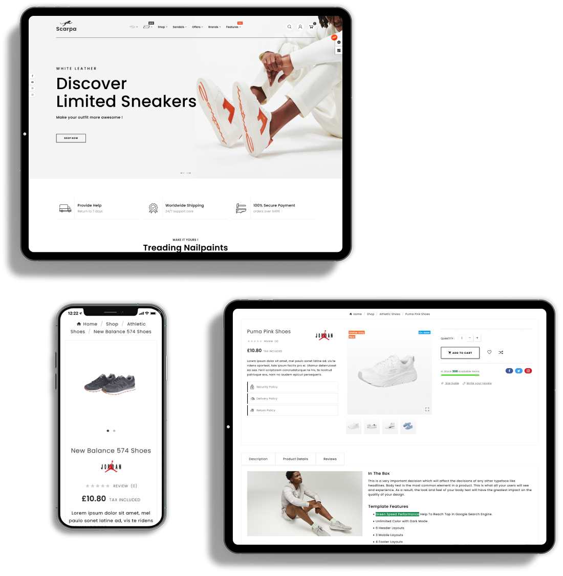 SCARPA is fully responsive, adapt the device size, pixel perfect and all elements look beautiful in all standard and Retina devices and resolutions.