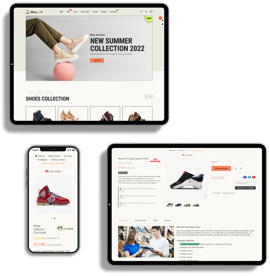 SHOESU is fully responsive, adapt the device size, pixel perfect and all elements look beautiful in all standard and Retina devices and resolutions.