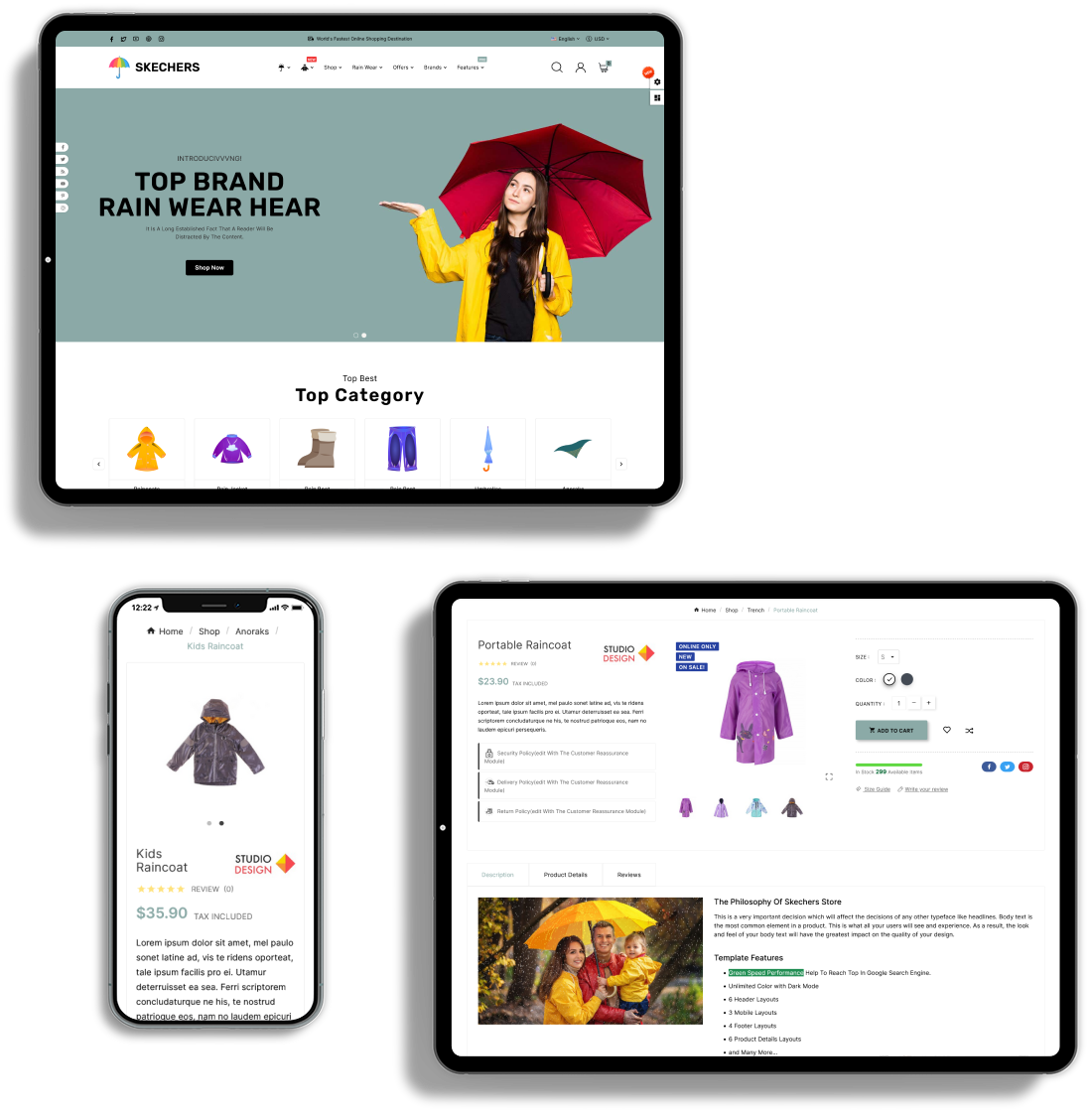 Here is Rich type of features that we used in SKECHERS. See and check out what you get with our Templates.