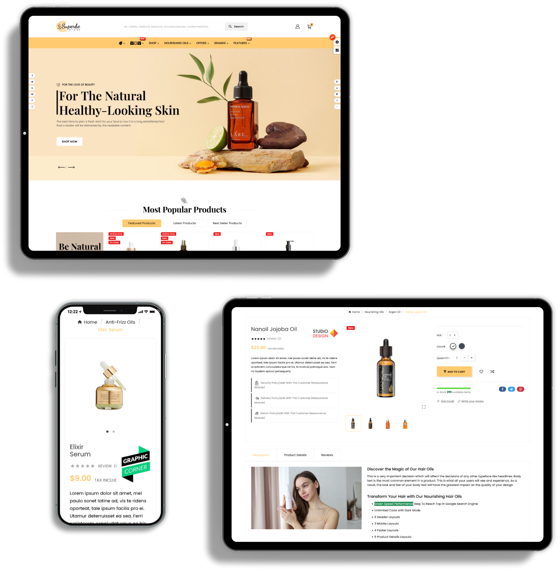 SUPERBE is fully responsive, adapt the device size, pixel perfect and all elements look beautiful in all standard and Retina devices and resolutions.