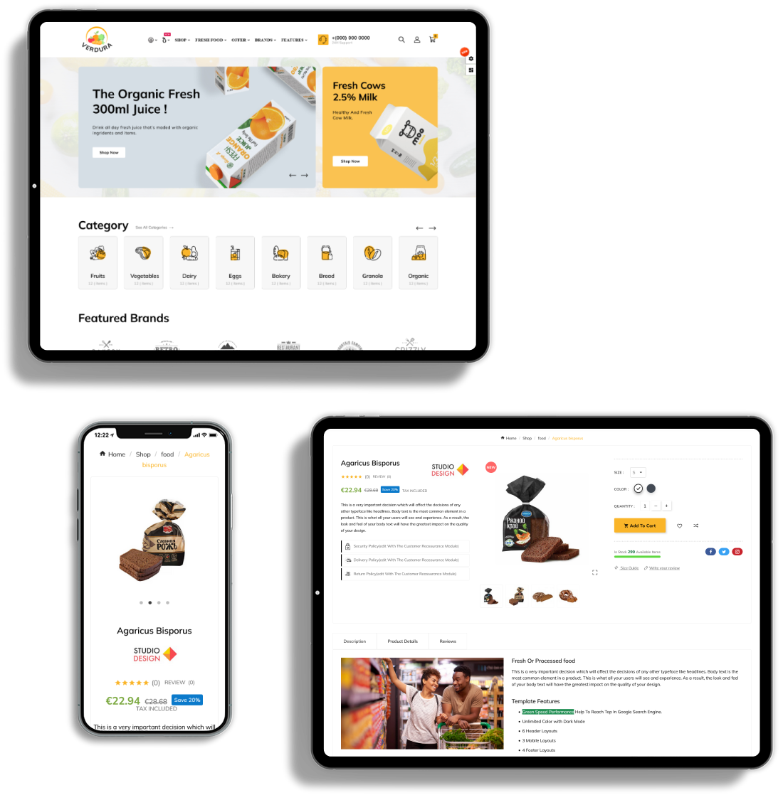 Verdura is fully responsive, adapt the device size, pixel perfect and all elements look beautiful in all standard and Retina devices and resolutions.