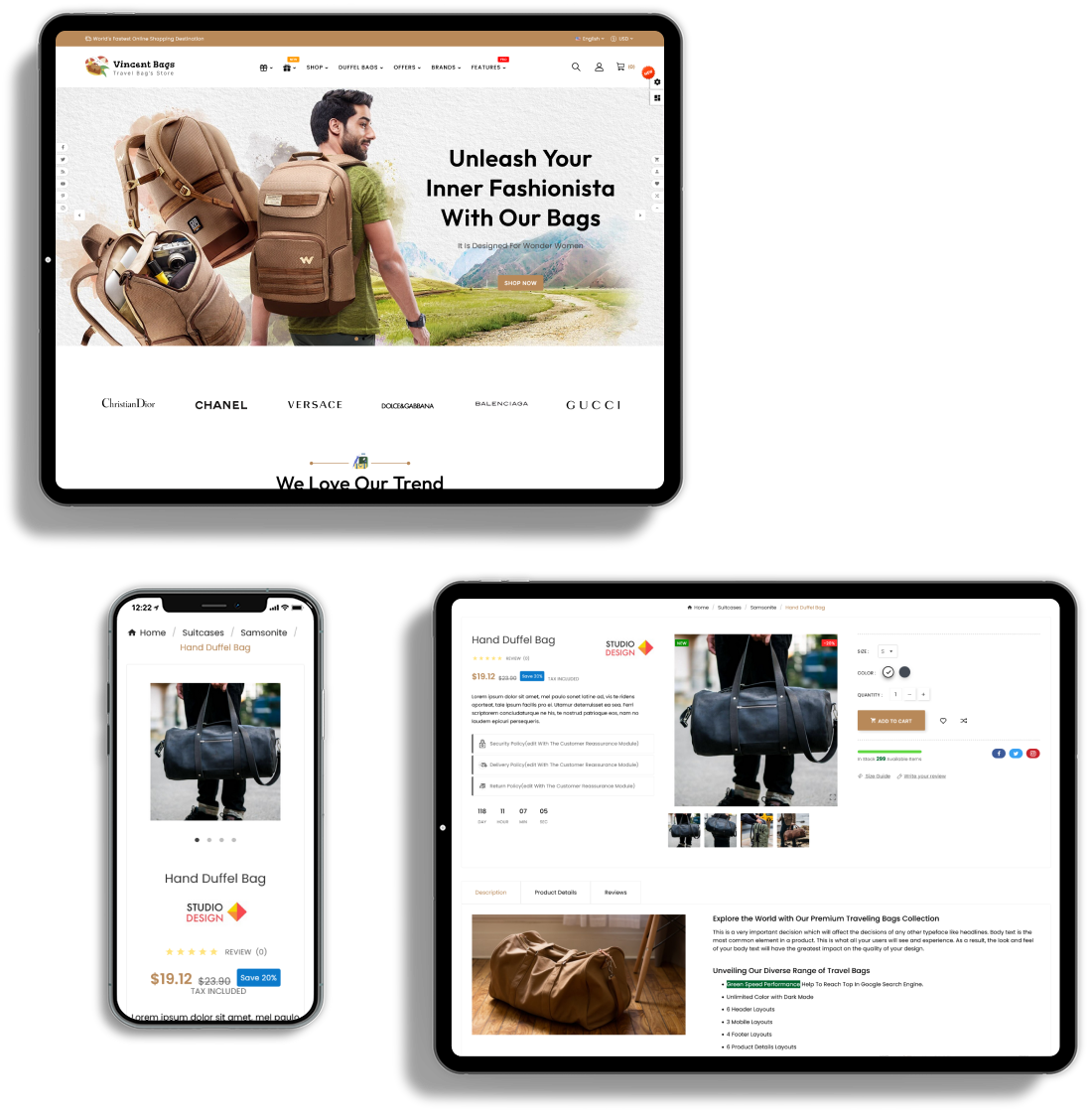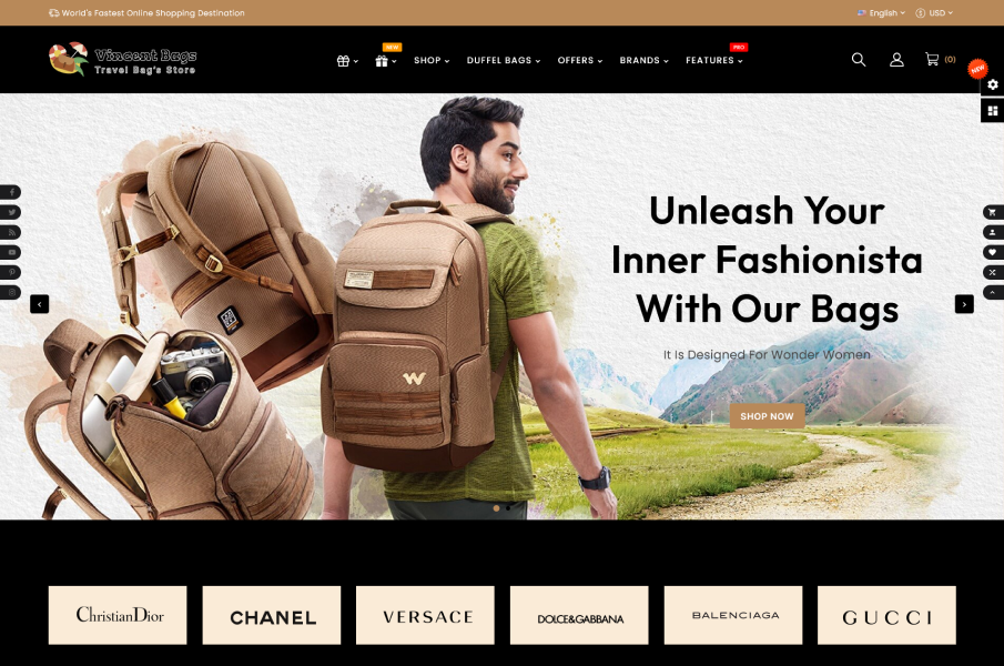 Here is Rich type of features that we used in VINCENTBAGS. See and check out what you get with our Templates.