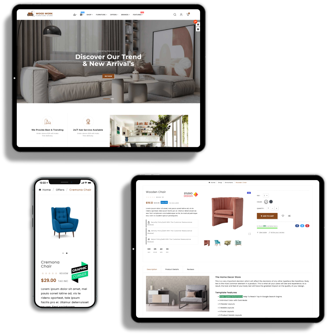 Here is Rich type of features that we used in WOODWORK. See and check out what you get with our Templates.